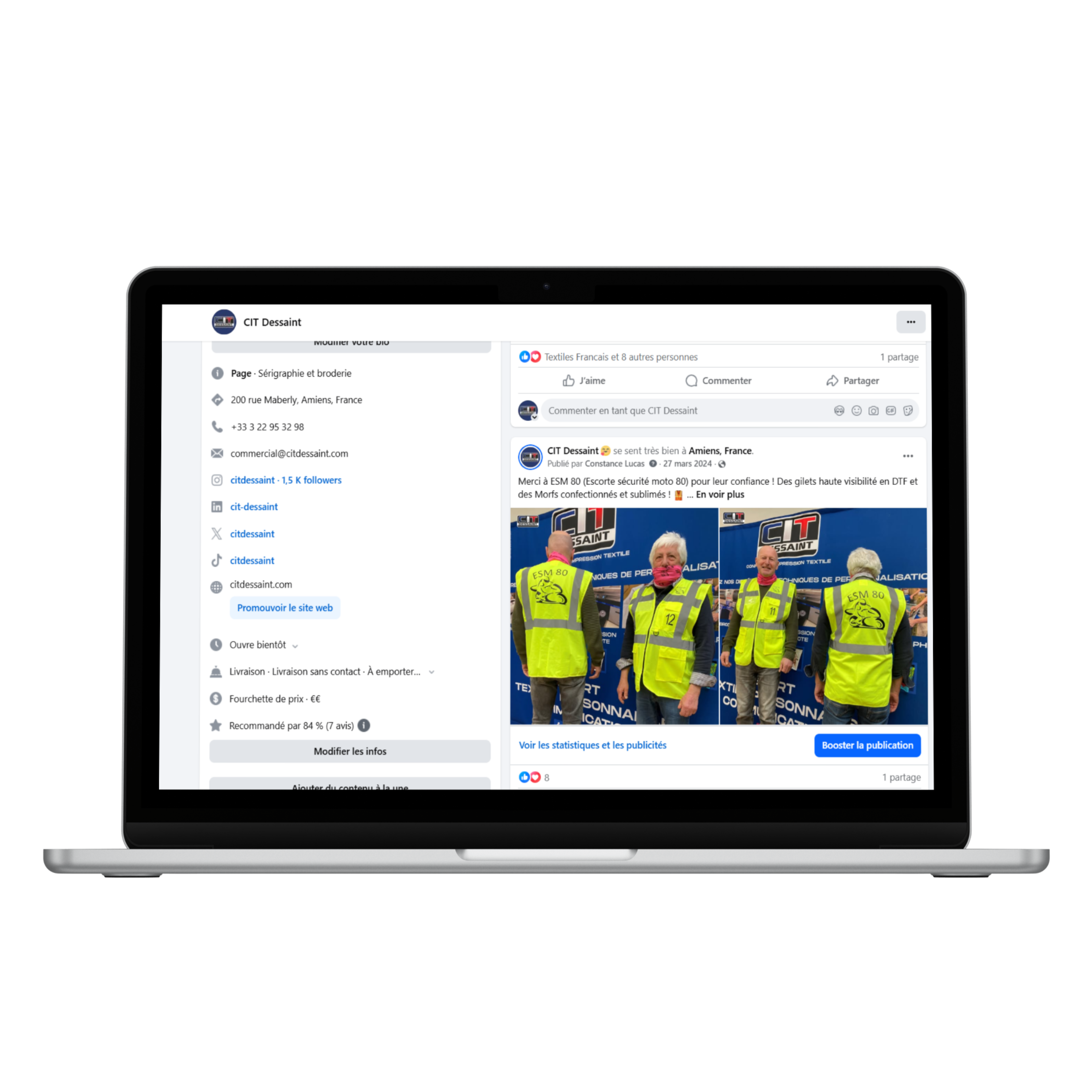 Chez CIT Dessaint, nous mettons un point d’honneur à accompagner chaque client avec proximité et expertise. Basés à Amiens depuis 1992, nous conjuguons savoir-faire textile, créativité et réactivité pour donner vie à vos projets personnalisés. Chaque commande bénéficie d’un suivi unique, de la conception jusqu’à la livraison, afin de garantir des produits de qualité qui reflètent parfaitement votre identité.