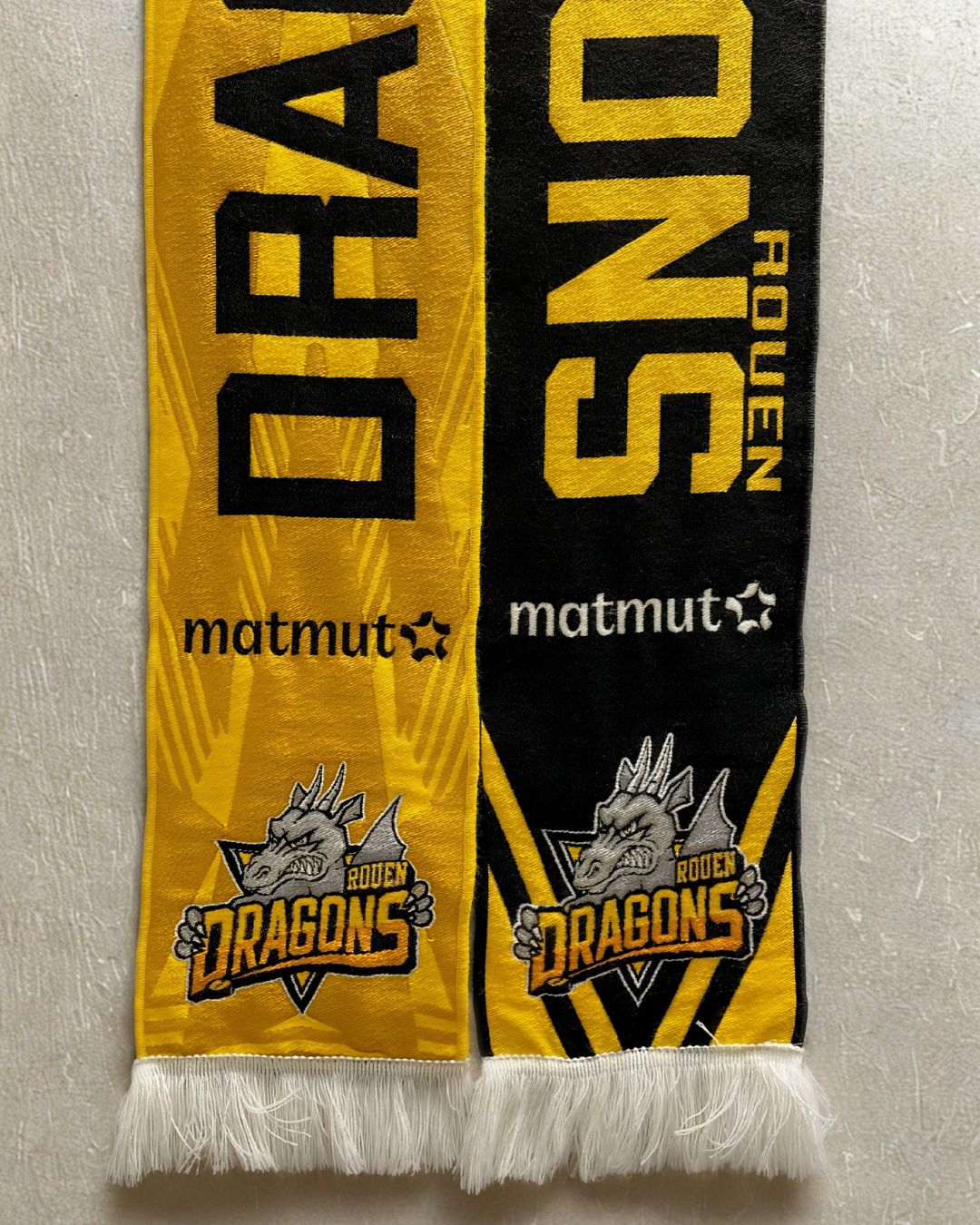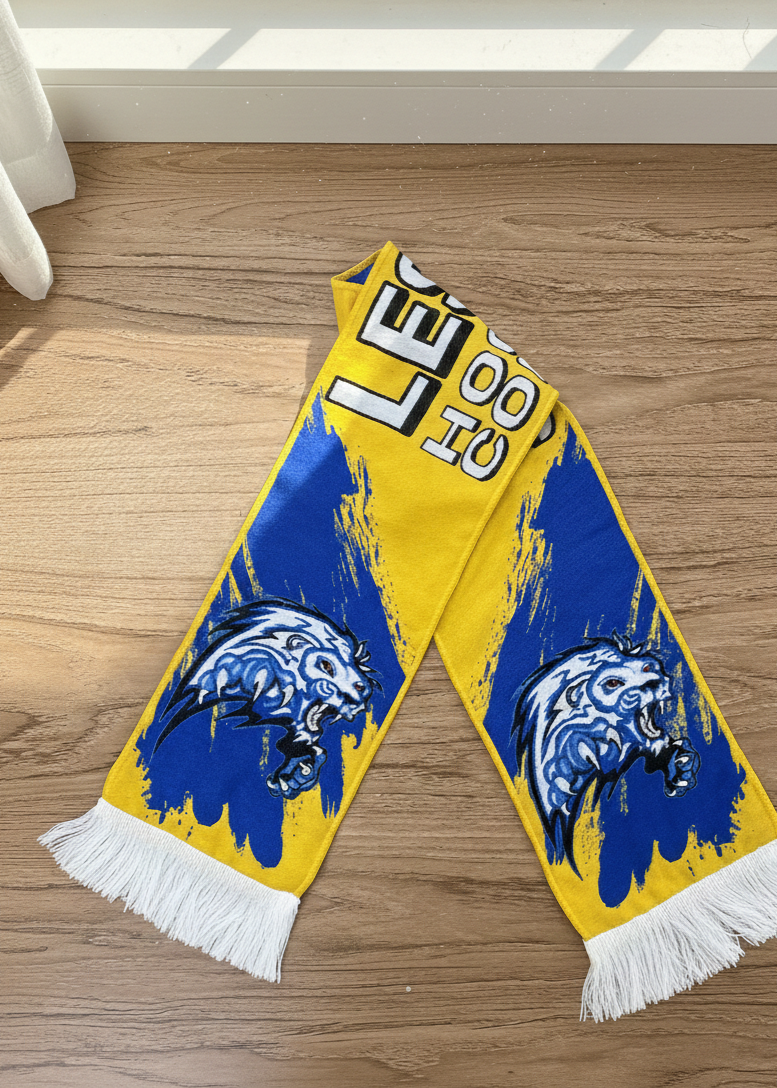 Finitions sur-mesure : franges, ourlets ou bords droits, tout est personnalisable pour correspondre à l’image de votre club, association ou entreprise.