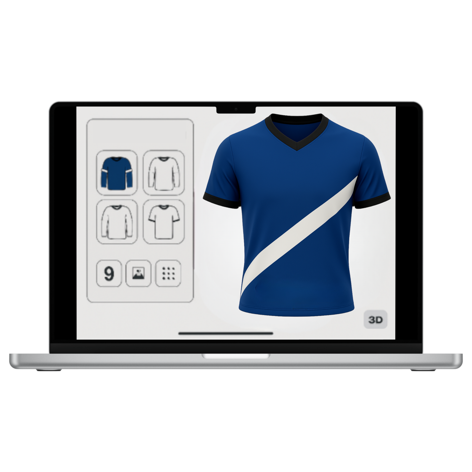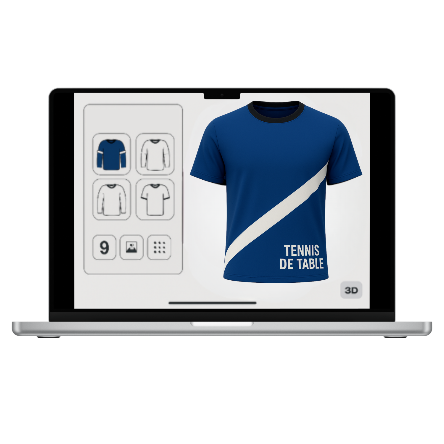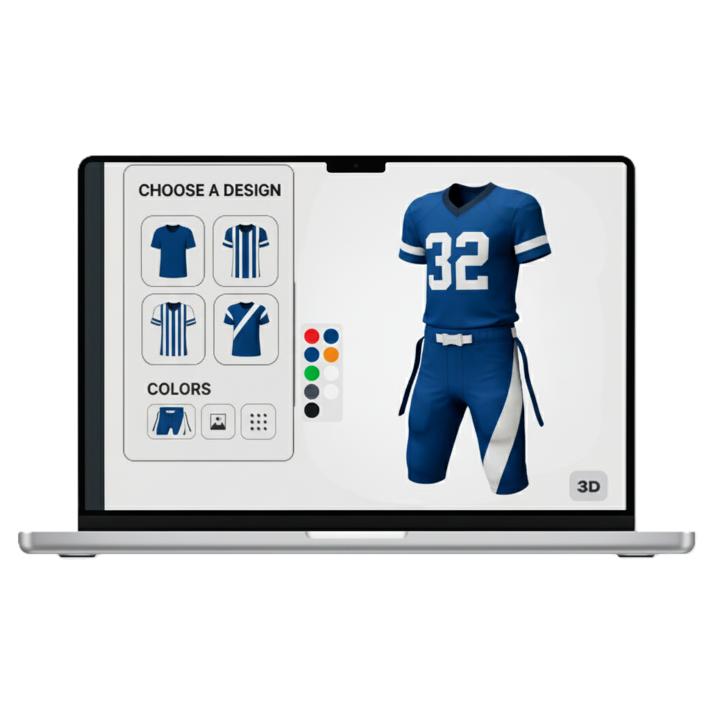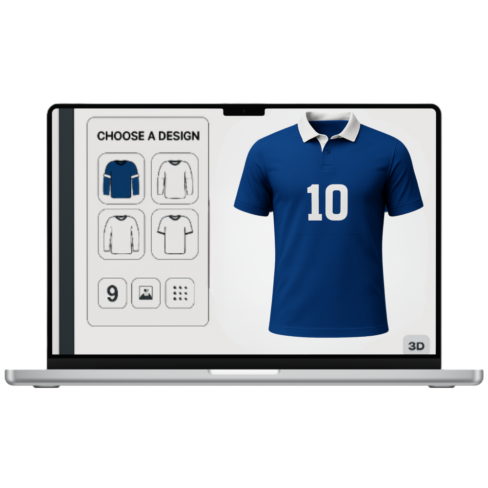 Grâce à notre configurateur 3D interactif, personnalisez chaque détail de votre maillot en quelques clics : choix des couleurs, placement des logos, numéros, finitions, et visualisation du rendu en temps réel.